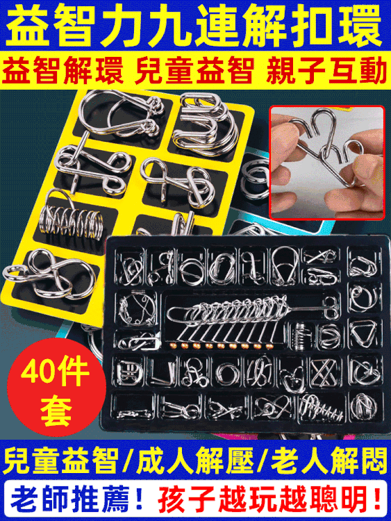 15分鐘前玩過這個孔明連環扣的孩子都比其他孩子聰明!鍛煉孩子空間想象力和邏輯思維能力! - 孔明連環扣益智40入套裝1入組 NT$950