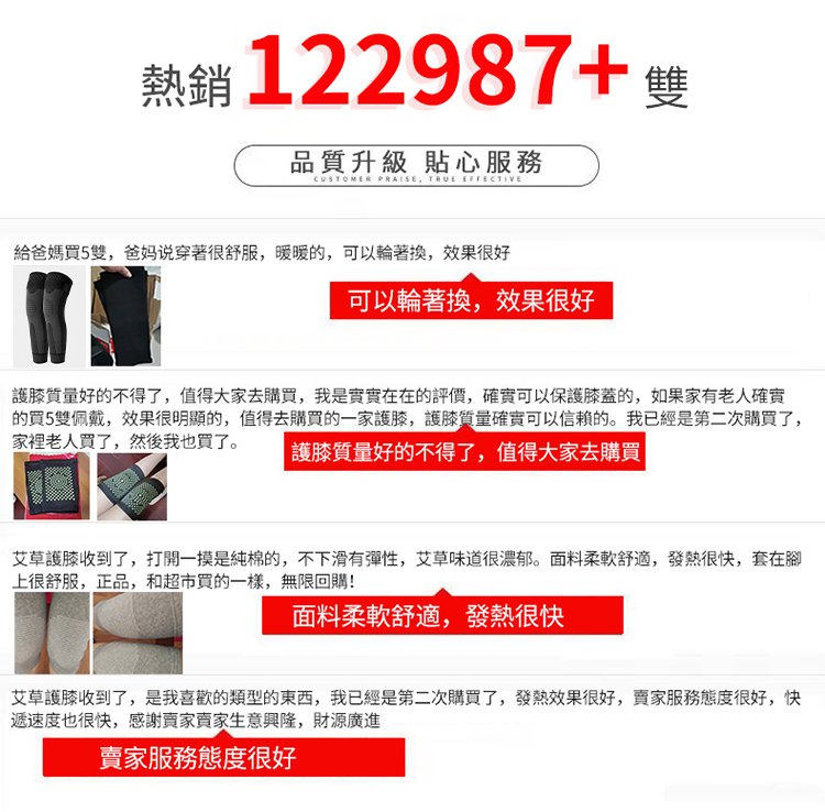 11分鐘前爆款艾草護膝 真正加倍保暖護膝,四季通用,老寒腿、關節涼、膝部不適專用! - 買三送三【6雙】NT$1098 均價183/入,免運